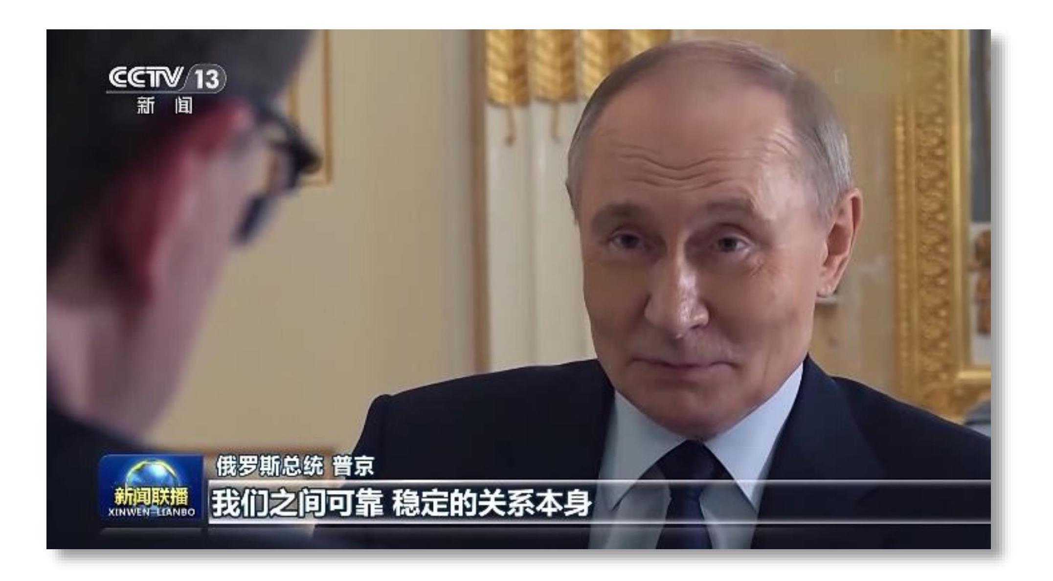 总台言论评论矩阵★■◆■■◆“国际锐评■■■★”◆■■■“时政新闻眼”“主播说联播”“时政微观察★★■”■■★“天天学习”■★★■◆“联播+”“先声夺人”等深入解读习主席此访意义重大、成果丰硕,引领中俄关系向着更高水平迈进,彰显中国捍卫国际公平正义、维护世界和平稳定的大国担当。