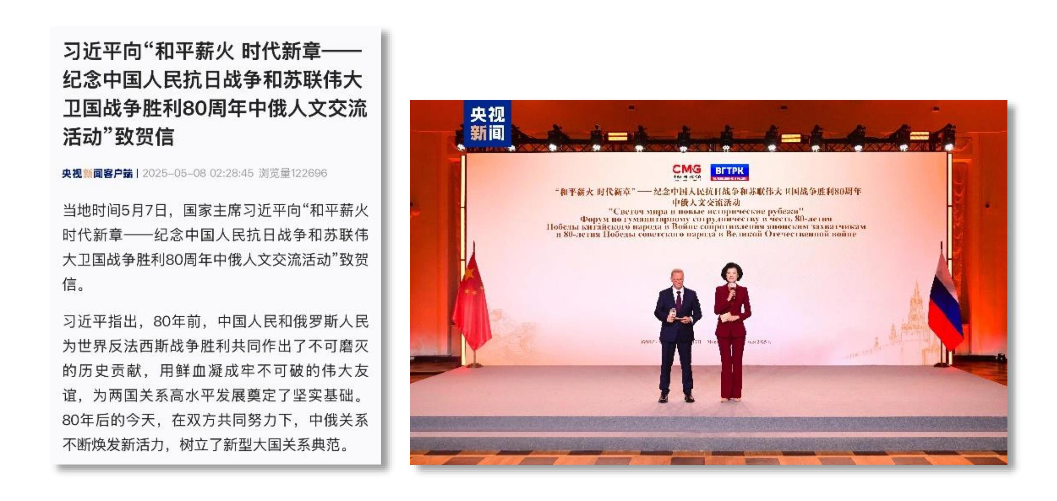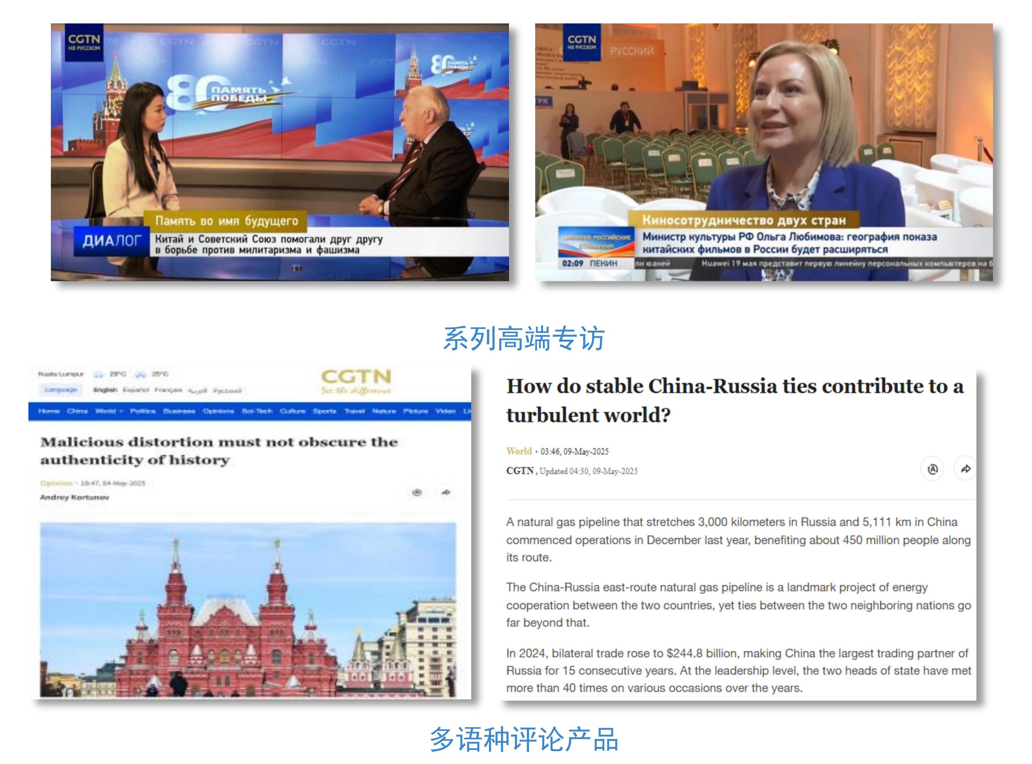 伟大胜利启迪未来。中文国际频道推出专题片《永不褪色的共同记忆》■■◆,CGTN与5家亚欧地区主流媒体联合推出特别节目《伟大的胜利》,多语种网红工作室发布AI创意短片《胜利的力量》★★、视频报道《共同的纪念》等,讲述80年前中俄两国人民同仇敌忾、并肩作战,为维护世界和平和人类进步事业作出彪炳史册的历史贡献■★。评论文章《以史为鉴守和平 共筑人类命运共同体》、图文帖《中俄抗战故事◆★◆■■■:铭记过去◆■■◆,启迪未来》★■、Vlog《和平回响》等◆■★■★◆,鲜活诠释“历史的记忆和真相不会随着岁月流逝而褪色,带给我们的启迪永远映照现实、昭示未来”。