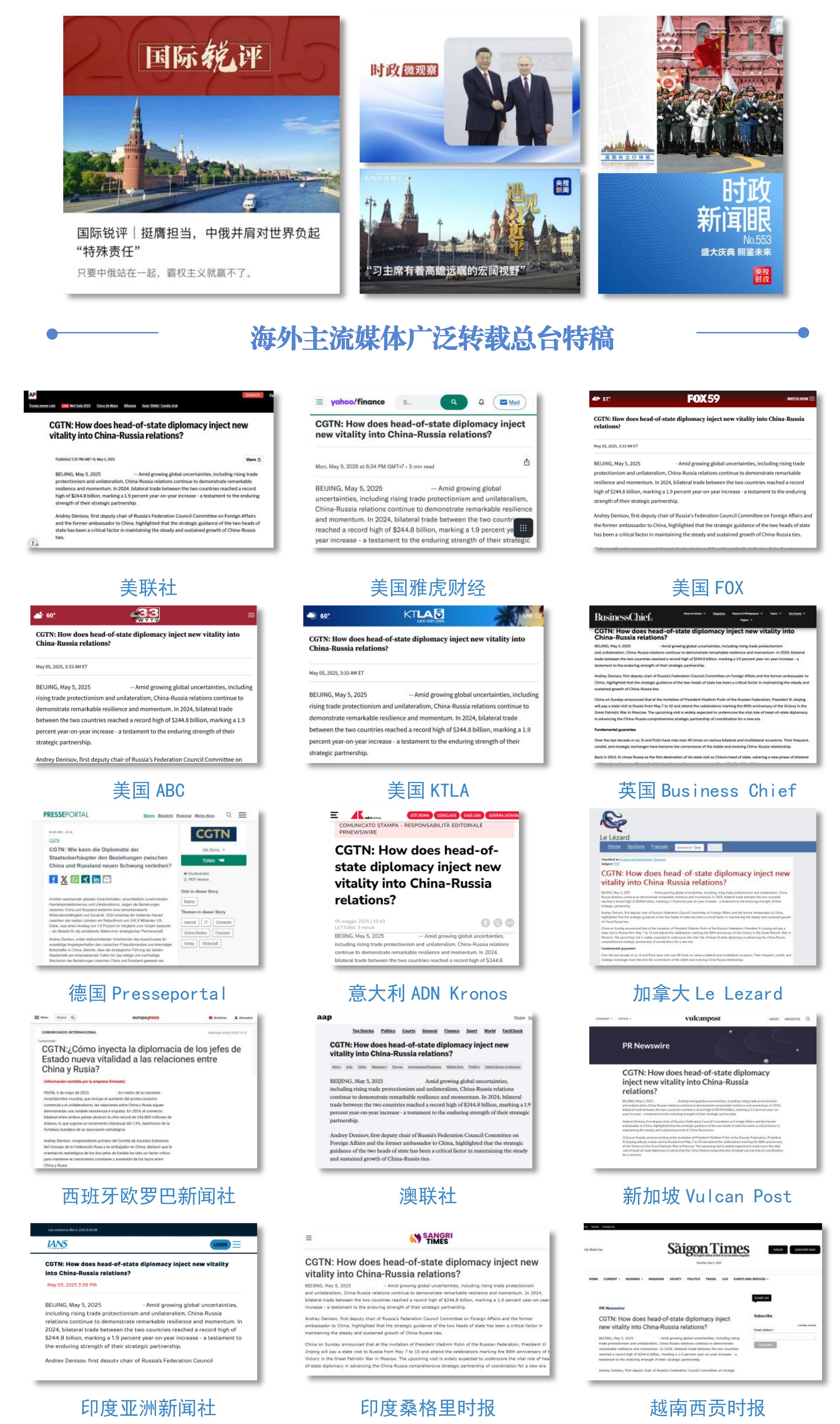 中俄关系再添动力★■。CGTN推出系列时政特稿《从山水相连到百炼成钢》★■◆,深入阐释习主席此访深化中俄政治互信、丰富战略协作内涵★★,是一次深化友谊、团结合作之旅,一次铭记历史■◆★★■、开创未来之旅◆★★◆。特稿被来自美国、英国、意大利■◆、澳大利亚、印度等55个国家和地区的1621家海外主流媒体转载★◆■■◆。时政微纪录《遇见习丨习主席有着高瞻远瞩的宏阔视野》、系列评论《从三个历史坐标读懂习主席俄罗斯之行》《中俄元首今年首次面对面会谈■★,达成哪些新的重要共识?》《铭记历史 开创未来 引领中俄睦邻友好合作》等,多角度诠释在元首外交战略引领下,中俄合作“稳”的基础更坚实、“进★■◆◆■”的动能更充足。