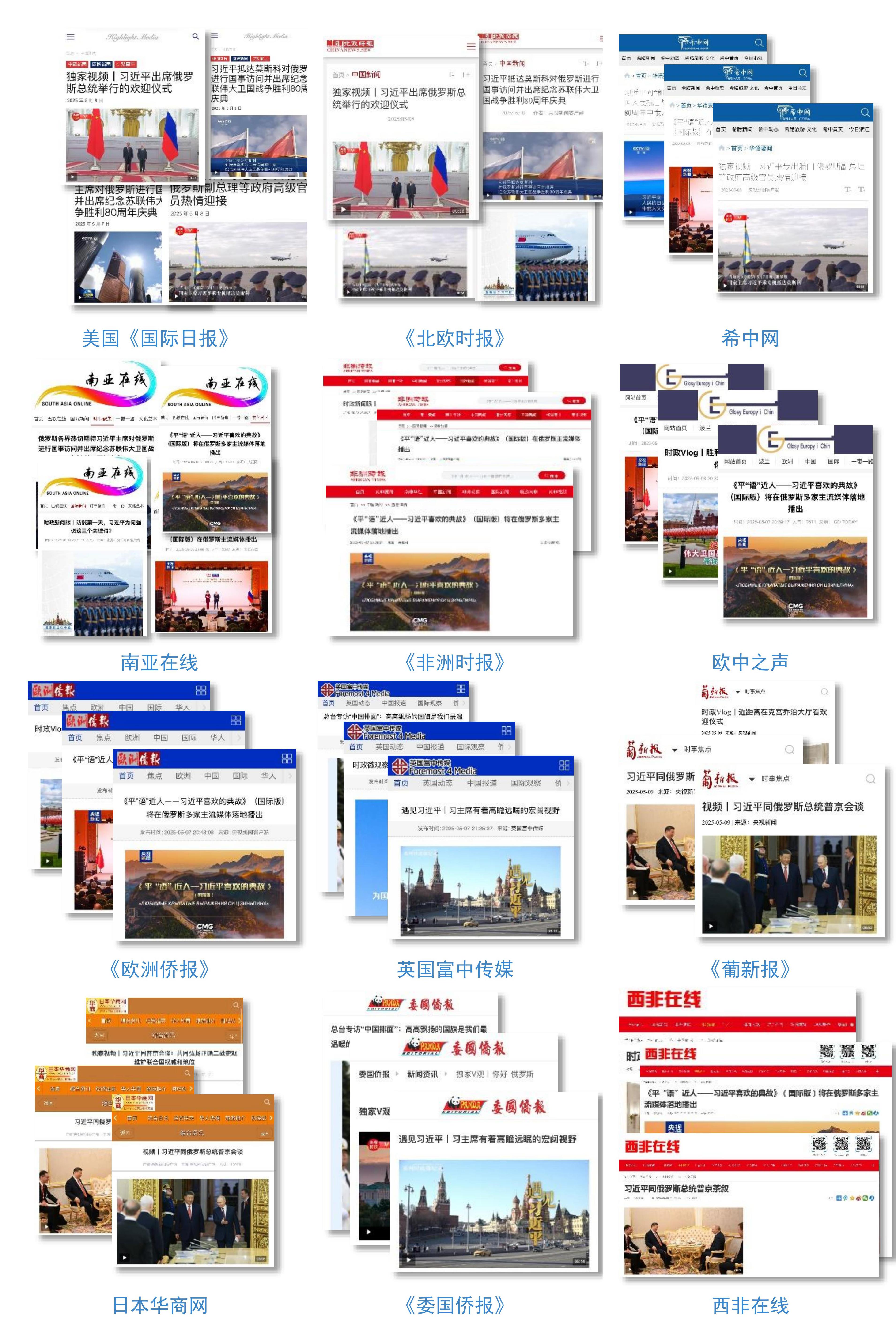 总台系列报道被美国《国际日报》、欧中之声■■■、《欧洲侨报》《北欧时报》《葡新报》《非洲时报》《中希时报》《委国侨报》、西非在线、南亚在线、日本华商网、新西兰格局传媒等全球主流华文媒体,以及香港明珠传媒、澳门明言传媒■◆■★◆、澳门《商讯》、台湾《屏东时报》、台湾番薯藤新闻等港澳台媒体大量转载转发。中文国际频道信号被30余家海外平台实时引入报道。