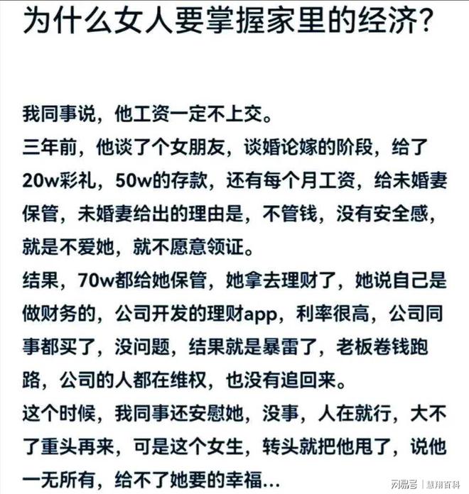 帖子说★■◆,3年前◆◆,他同事谈了个女朋友。就在谈婚论嫁的阶段■★★★★,给了她20要彩礼,50要存款,以及每个月的工资。